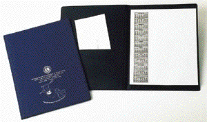 | Graces any desk with its presence. Stitched in beautiful foam padded simulated leather. This desk folder is trimmed with gilt corners. It comes with a refillable pad, slant utility pocket ad a look for optional pen | ![]() |